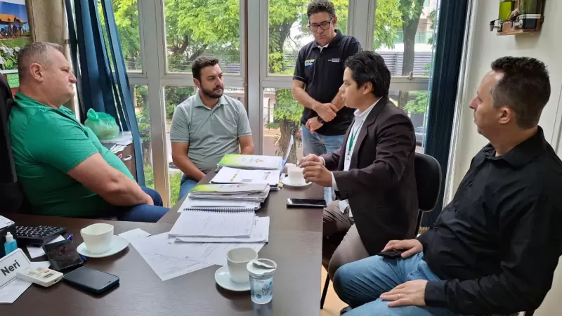 O assessor da Secretaria de Estado do Turismo do Paraná (Setu-PR), Ailton Martins Lima, e o jornalista Dielson Pickler, participaram de uma reunião com o prefeito Adriano Backes na manhã desta quarta-feira (29), na prefeitura de Marechal Cândido Rondon.