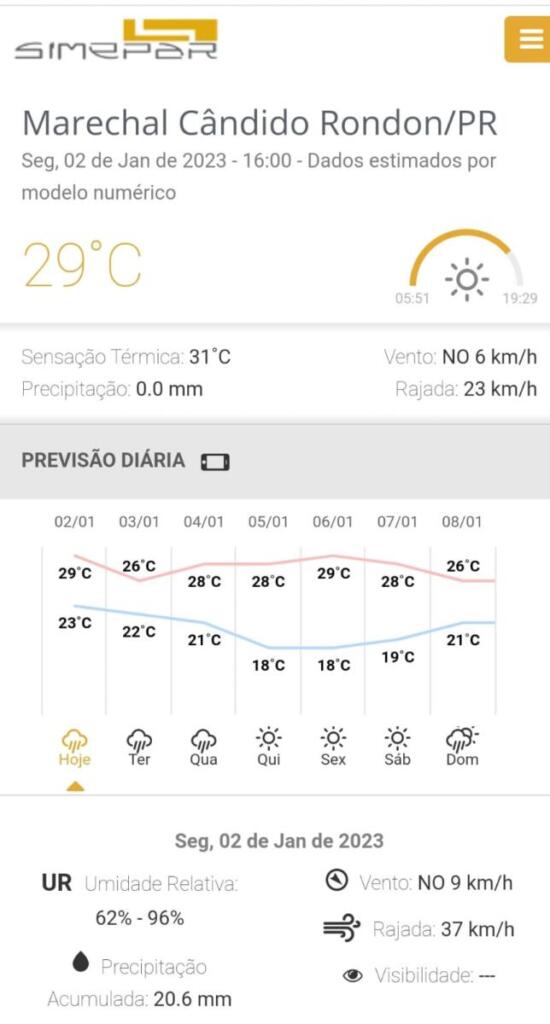 Veja abaixo a previsão da semana para Marechal Rondon:
