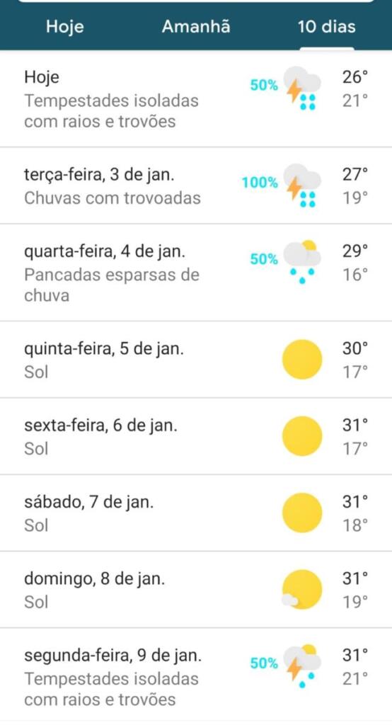 Aa temperaturas máximas variam entre 26ºC e 29ºC, conforme o Simepar. Aplicativos do clima apontam alta de até 31ºC.