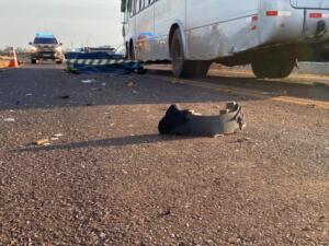 Um acidente aconteceu na manhã desta sexta-feira (24), na BR-163, no município de Quatro Pontes, envolvendo um ônibus escolar e uma motocicleta, ambos com placas de Marechal Cândido Rondon, sendo que o condutor da moto perdeu a vida no local.