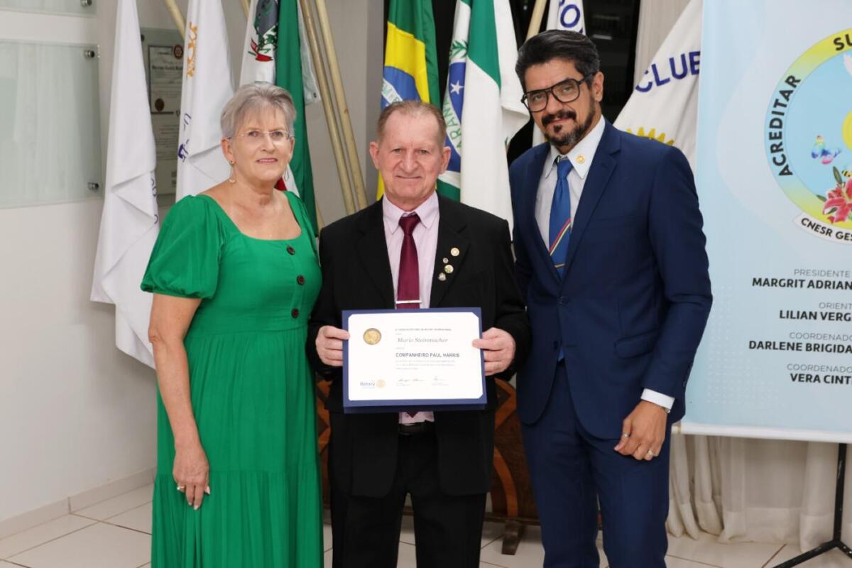 “A história de Mario é um exemplo inspirador de determinação, empreendedorismo e compromisso comunitário, motivando outros a perseguirem seus sonhos e a fazerem a diferença onde quer que estejam. A comenda e reconhecimento à família Steinmacher são mais do que justos, pois eles são exemplos do lema rotário ‘dar de si, sem pensar em si’”, evidenciou Gerciney.