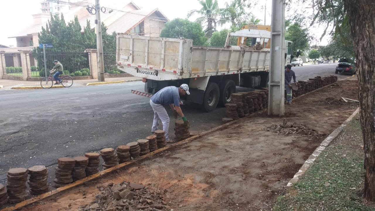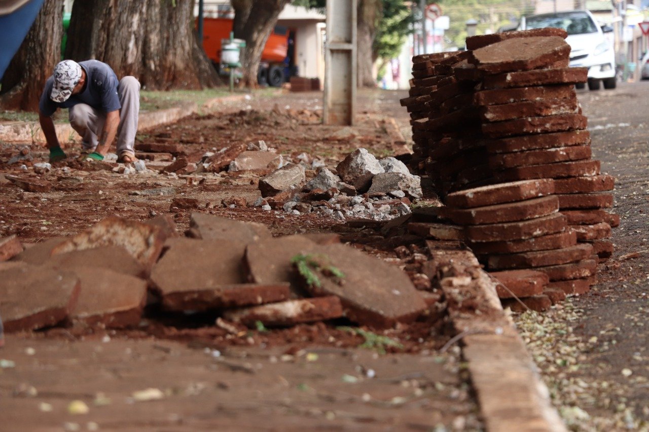 A empresa vencedora do processo licitatório iniciou os trabalhos com a retirada da calçada antiga.