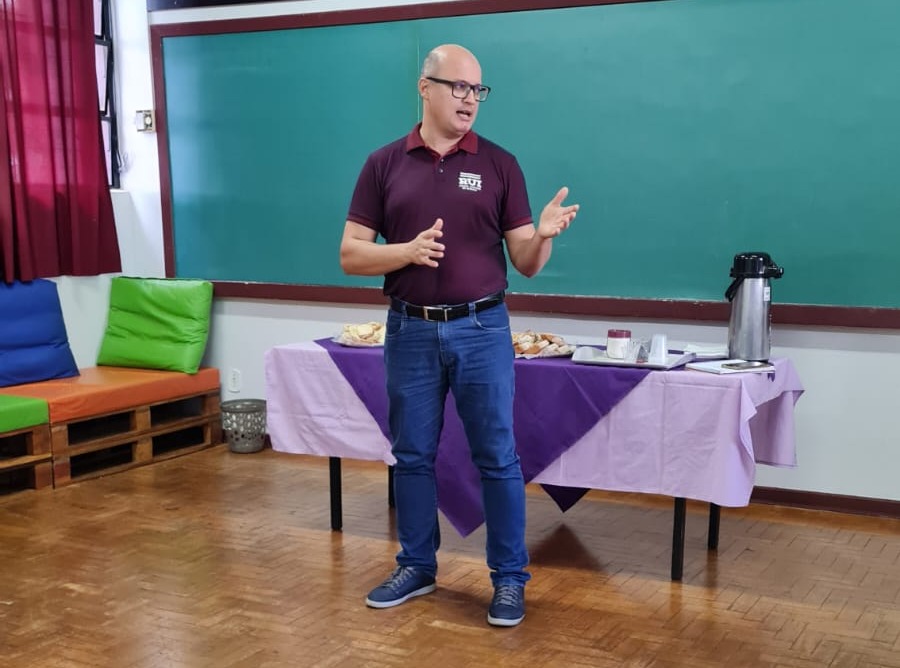 Durante o encontro, o diretor do educandário, pastor Cleudimar Wulff, comentou sobre os projetos da escola e sobre a volta do sistema Positivo.