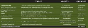 Os R$ 18 milhões de investimentos anunciados pelo mandatário foram distribuídos em oito obras. Entre estas, algumas já eram aguardadas pelos munícipes, como as obras no prolongamento da Avenida Rio Grande do Sul, trecho recentemente municipalizado. Outras, porém, são recentes, como o prolongamento da Avenida Írio Jacob Welp, projeto sinalizado no lançamento do Hospital da Unimed.