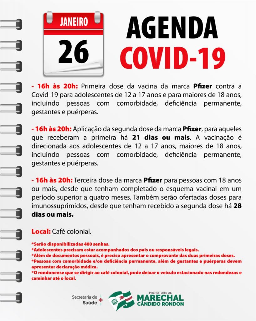 Confira abaixo mais detalhes sobre a agenda de vacinação contra a Covid-19: