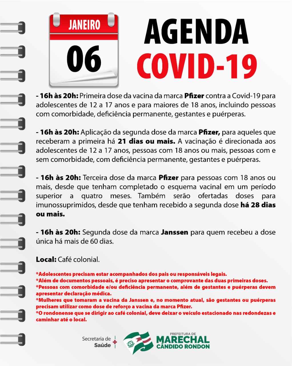 Confira abaixo mais detalhes sobre a agenda de vacinação contra a Covid-19: