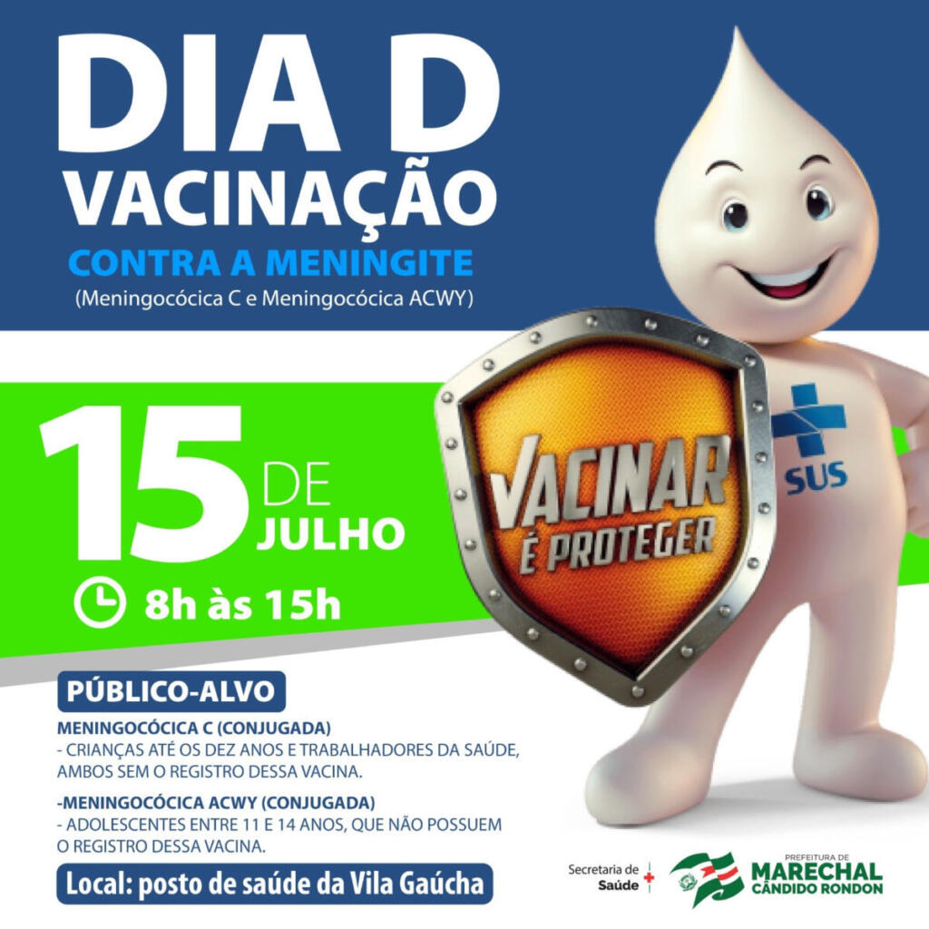 A Secretaria de Saúde de Marechal Cândido Rondon programa para este sábado (15) uma campanha com o objetivo de intensificar a vacinação contra a meningite meningocócica C e meningocócica ACWY.