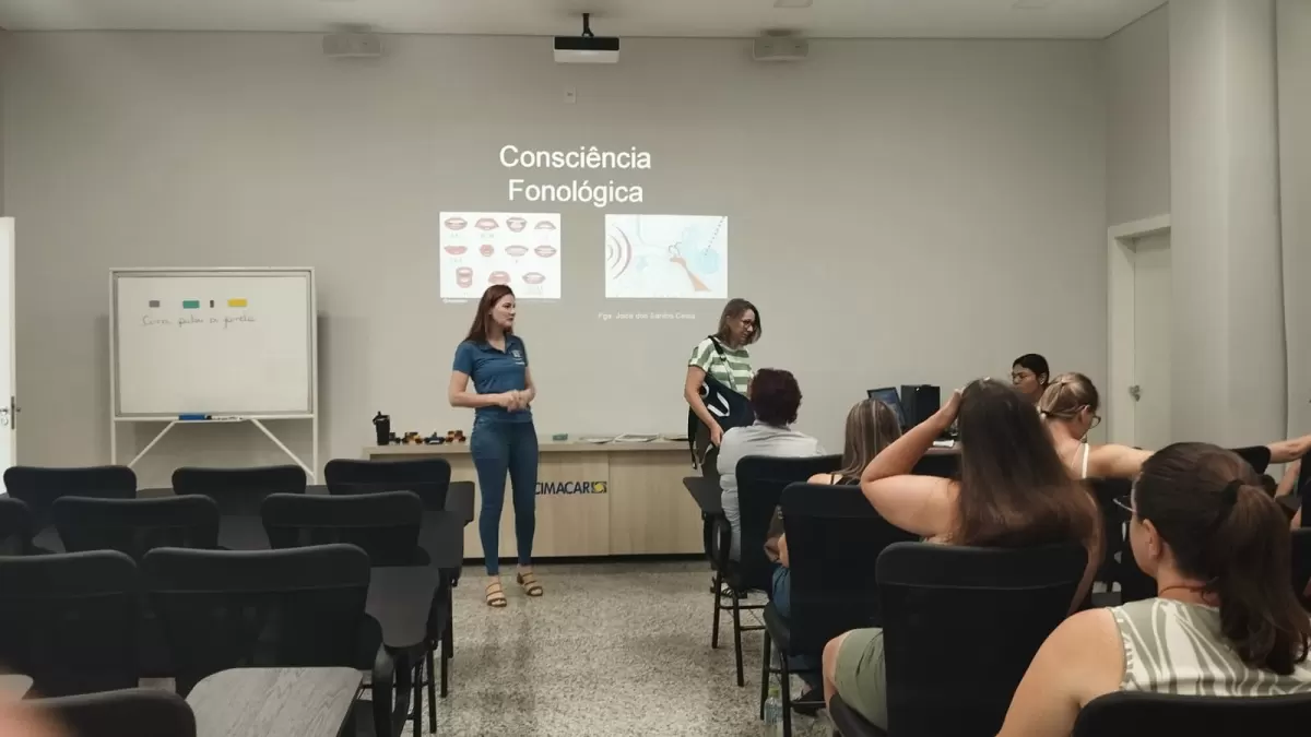 Durante os encontros, foram abordadas as atribuições dos profissionais da Sala de Recursos Multifuncionais (SRM), do Professor de Atendimento Educacional Especializado (PAEE) e do Professor de Apoio à Comunicação (PAC), além das normativas que orientam a Educação Inclusiva. Também foram trabalhadas estratégias práticas, avaliação inicial, intervenções pedagógicas, consciência fonológica, articulação com a sala regular e a elaboração do Plano Educacional Individualizado (PEI).