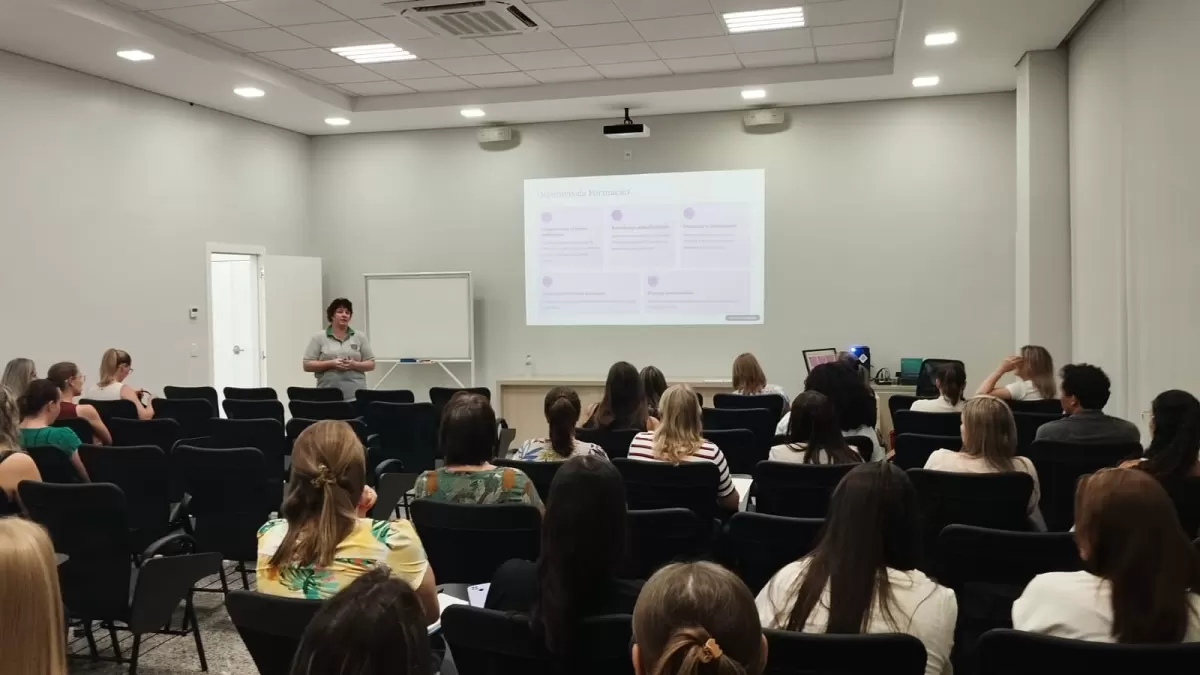 A formação foi conduzida pela equipe multidisciplinar composta pela assessora Thassiane Terre de Meira, pela psicóloga Cristiane Fujywara, pela fonoaudióloga Joice Costa, pelas assistentes sociais Roseli de Castro e Débora Gerke, e pelas neuropsicopedagogas Adriani Much, Célia Bach, Débora Geib, Eliane Grisa e Mara Mallmann.
