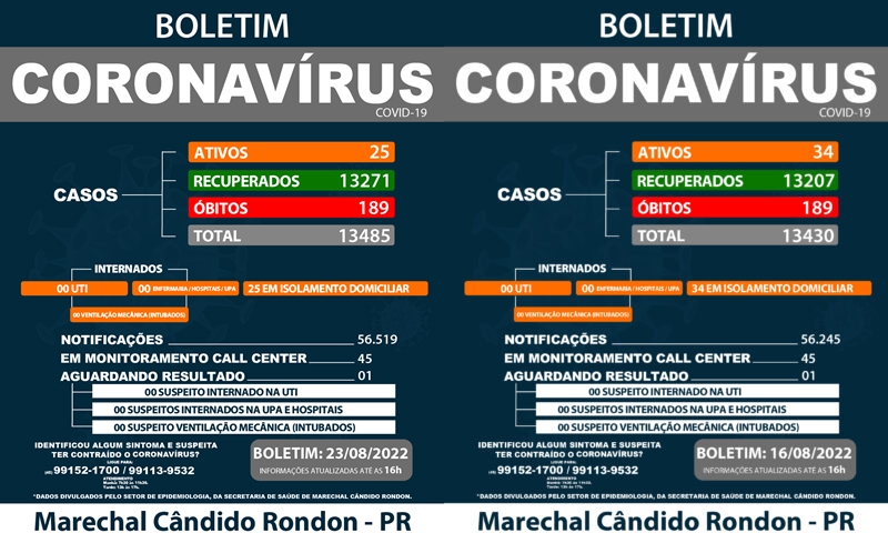 Compare os últimos dois boletins emitidos em Marechal Rondon: