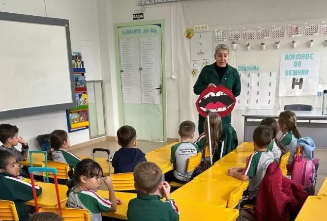 As estratégias adotadas incluem escovação supervisionada, aplicação tópica de flúor, triagens odontológicas periódicas e ações educativas, como palestras, teatros e demonstrações práticas. Além de reduzir significativamente os agravos bucais, essas atividades fortalecem o vínculo entre profissionais de saúde, comunidade escolar e famílias, aproximando as crianças das Unidades Básicas de Saúde quando há necessidade de acompanhamento ou tratamento, por meio de comunicados encaminhados aos pais.