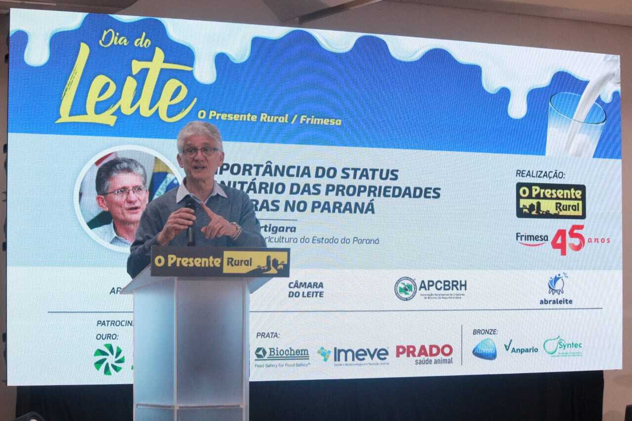 O evento, promovido pelo Jornal O Presente Rural, em parceria com a Frimesa Cooperativa Central, discutiu os desafios e oportunidades do mercado de lácteos. Ortigara fez uma palestra sobre a importância do status sanitário das propriedades leiteiras do Paraná.