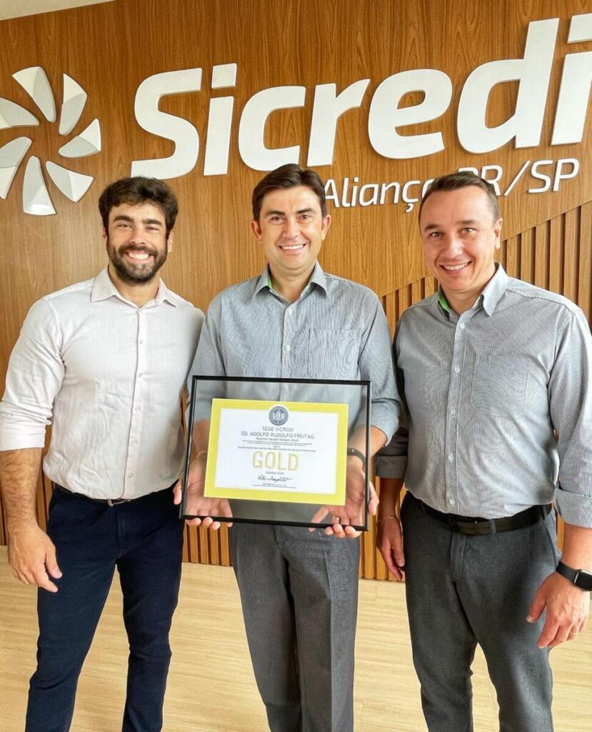 Inaugurada em setembro de 2023, a sede da Sicredi Aliança PR/SP – Edifício Adolfo Rudolfo Freitag em Marechal Cândido Rondon, recebeu nesta terça-feira (5) o certificado LEED, emitido pela GBC Brasil. A certificação LEED – Leadership in Energy and Environmental Design, demonstra que o prédio é referência em eficiência energética e design ambiental. Para receber o selo, a construção precisa seguir uma série rigorosa de fatores que são avaliados por uma equipe técnica da Green Building Council. O prédio alcançou 67 pontos e se classifica na categoria LEED Gold. Em Marechal Rondon, o prédio é o primeiro a ter esse reconhecimento.