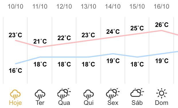 Por sinal, chuvas devem se frequentes durante essa semana no município. Somente para hoje a previsão é de precipitação acumulada de 49,4 milímetros. A temperatura máxima deve ficar na casa dos 23ºC, conforme informa o Sistema de Tecnologia e Monitoramento Ambiental do Paraná (Simepar).
