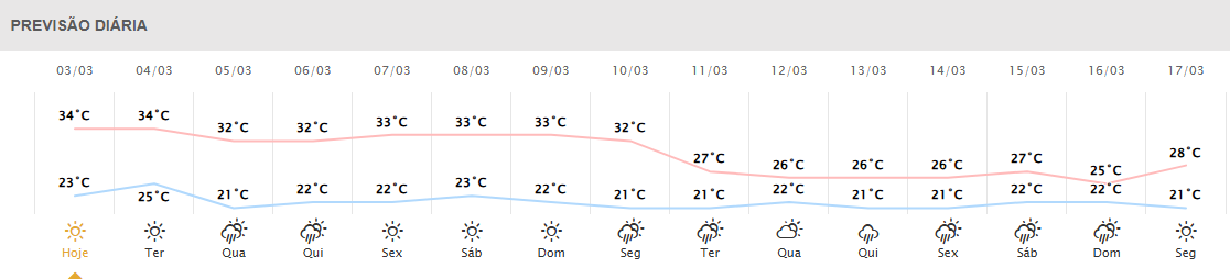 Máxima em Foz do Iguaçu também chega a 36°C. O dia na Terra das Cataratas será com tempo estável e umidade do ar entre 31% e 64%.