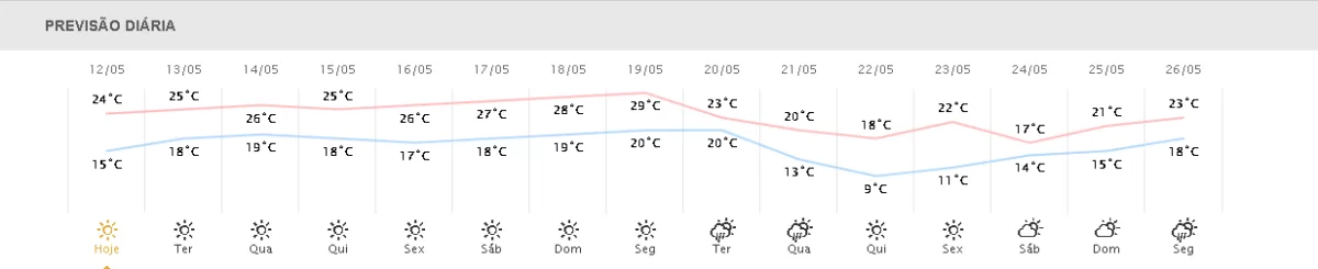 Confira como ficam as temperaturas ao longo da semana em Marechal Rondon, segundo o Simepar