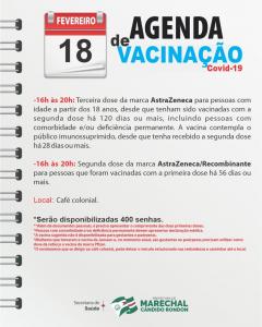A vacinação contra a Covid-19 segue acontecendo nesta sexta-feira (18) em Marechal Cândido Rondon.