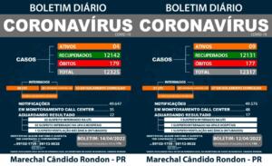 Ao todo, Marechal Rondon tem 12.325 diagnósticos positivos de Covid-19, sendo que 12.142 rondonenses já se recuperaram e 179 faleceram por complicações da doença – dois idosos foram as últimas vítimas da pandemia no município, clique e confira a matéria.