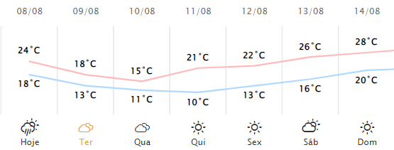 Para terça-feira (09) não há previsão de chuva, no entanto deve ficar mais frio. A temperatura máxima prevista para amanhã é de 18°C e mínima 13°C, conforme aponta o Simepar.