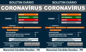 Nas últimas 48 horas, Marechal Cândido Rondon confirmou quatro novos casos de Covid-19. Segundo o boletim atualizado hoje (14) pelo Setor de Epidemiologia da Secretaria de Saúde, há 12.227 diagnósticos positivos de coronavírus no município rondonense.