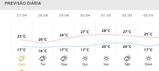 Confira como ficam os termômetros no munícipio ao longo da semana, de acordo com o Simepar: