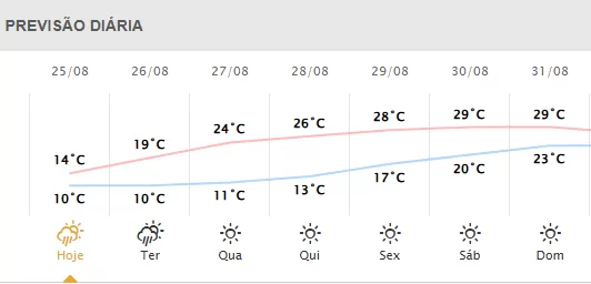 Confira como ficam as temperaturas nesta semana em Marechal Rondon, segundo o Simepar: