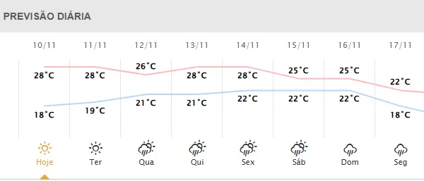 Tempo estável em Foz do Iguaçu com sol brilhando forte desde as primeira horas da manhã. As temperaturas variam de 18°C a 28°C e as rajadas de vento chegam a 28km/h.