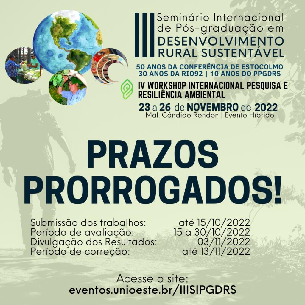 A Pós-Graduação em Desenvolvimento Rural Sustentável, que foi avaliada com o conceito 5 da Capes (clique e confira a matéria), realiza seu 3º Seminário Internacional de 23 a 26 de novembro.