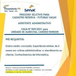 O Serviço Nacional de Aprendizagem Comercial (Senac) de Marechal Cândido Rondon está com um processo seletivo em aberto. A seleção acontece para cadastro de reserva de futuras oportunidades na unidade rondonense.