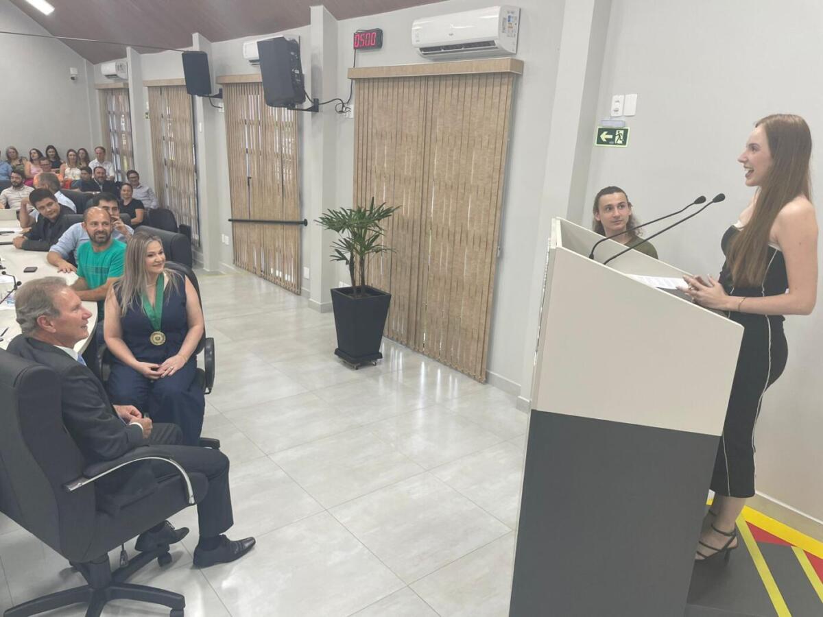 Em seu discurso, Lucinei Klein (que na cerimônia ainda foi homenageada pelos filhos Májori Regina e Carlos Eduardo e pelo esposo João Klein, a quem ela dedicou a medalha), agradeceu aos vereadores pela comenda, e também aos gestores municipais e servidores que atuam e atuaram com ela nestas três décadas de atividade profissional na prefeitura.