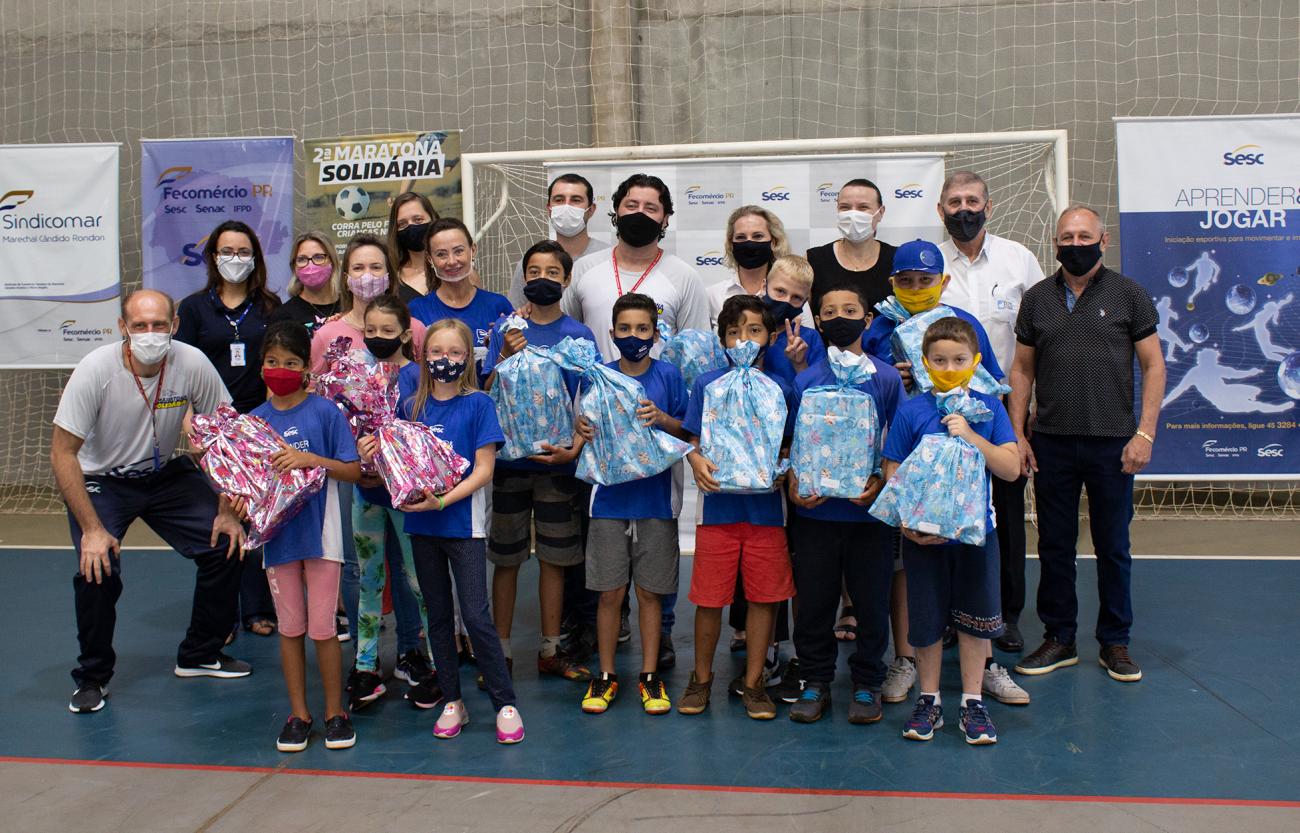 Nesta quarta-feira (10), o Sesc de Marechal Cândido Rondon realizou cerimônia de entrega dos tênis arrecadados na 2ª edição da Maratona Solidária. O projeto, que teve como slogan “Corra pelo futuro das crianças”, contou com a participação de mais de 3,4 mil pessoas, dentro e fora do Estado.