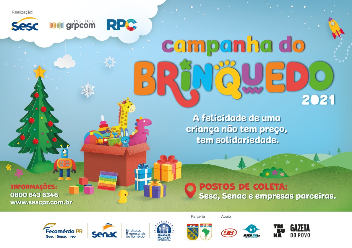 O Sistema Fecomércio Sesc Senac PR, a RPC e Instituto GRPCOM convidam a população paranaense para mais uma corrente do bem: a 13ª edição da Campanha do Brinquedo. Neste ano, a campanha começou na segunda-feira (04) e se estende até 11 de dezembro, em 35 cidades do Estado.
