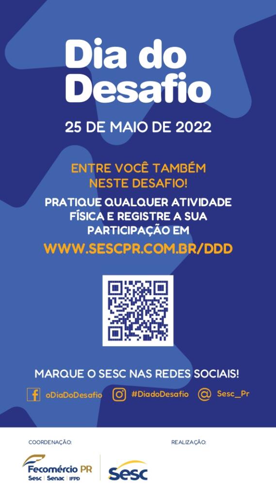 A participação também pode ser registrada nas redes sociais: basta postar fotos e vídeos com a hashtag #diadodesafio e marcar o perfil do Sesc através da @sesc_pr. Juntos, vamos mover o Paraná e vencer este desafio em prol da saúde e do bem-estar!