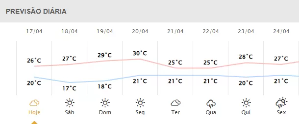 No Oeste, os volumes de chuva devem ficar baixos. Cascavel e Foz do Iguaçu registraram 1,2 milímetros de precipitação, com temperaturas entre 20°C e 25°C/26°C. Em Toledo ficam entre 20°C e 25°C.