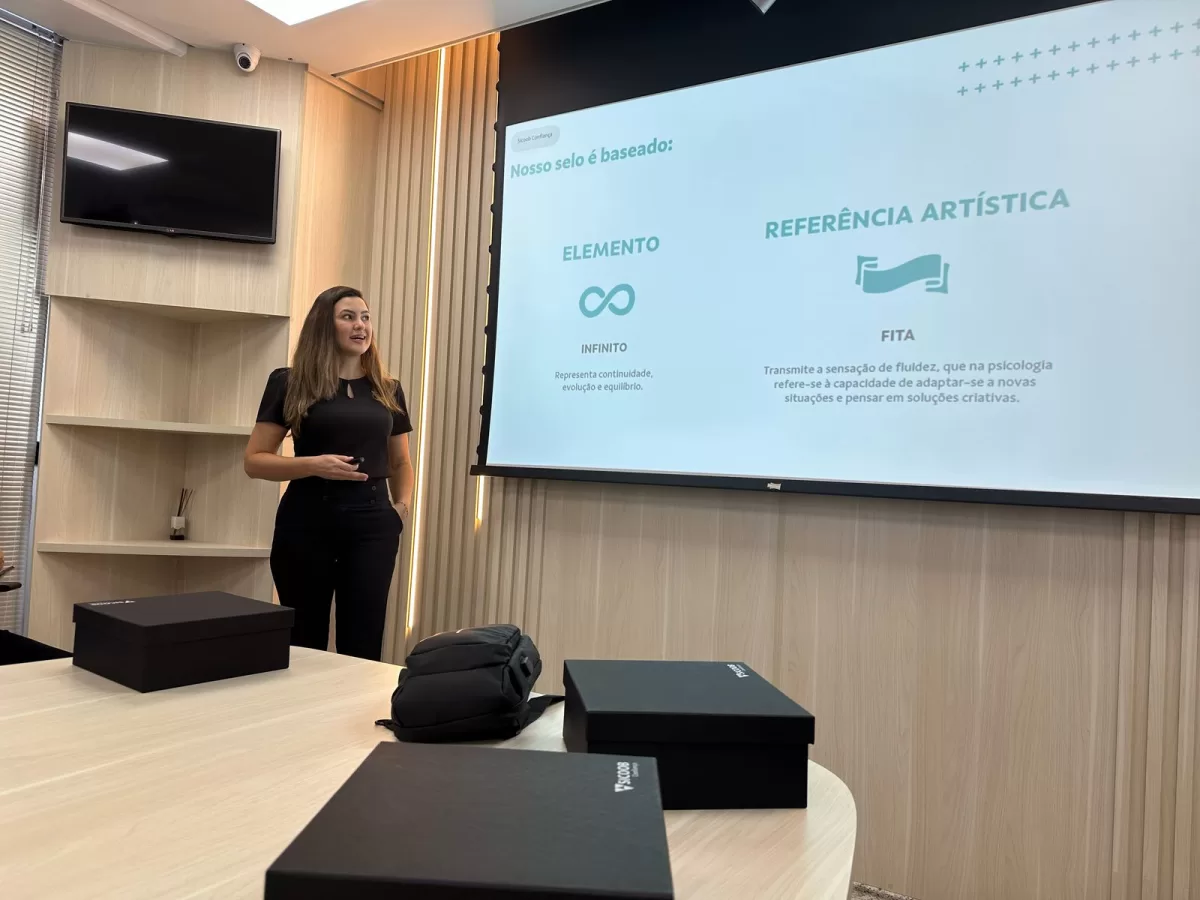 O novo selo em comemoração aos 20 anos do Sicoob Confiança, apresentado por Cheila Kindle, assessora de Comunicação e Marketing, é baseado com o elemento do símbolo infinito, que representa continuidade, evolução e equilíbrio, e a referência artística é a fita, transmitindo a sensação de fluidez, que na psicologia refere-se à capacidade de adaptar-se a novas situações e pensar em soluções criativas.