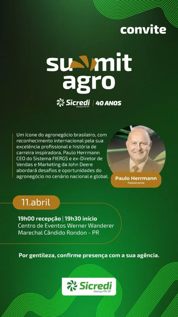 11 de abril – Para agricultores (as) – Paulo Herrmann – CEO -do Sistema FIERGS e ex- Diretor de Vendas e Marketing da John Deere na América Latina