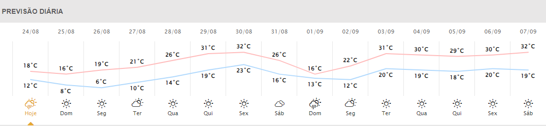 Em Toledo, a temperatura mínima é de 10°C, com 98% de chance de chover durante o dia. Já as terras das Cataratas devem ficar ensolaradas, mas não quentes. Foz do Iguaçu amanheceu com os termômetros marcando 12°C e temperatura máxima deve ser de 18°C.