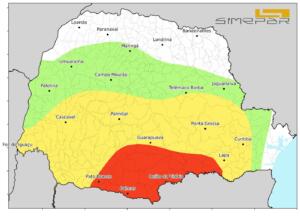 Em função da atuação da massa de ar polar, há previsão de geadas amplas. A ausência de vento também favorece a formação do fenômeno. Geadas devem ser mais fortes no Sudeste, centro-Sul e no Sudeste paranaense, setores onde as temperaturas devem ficar abaixo de 0°C. No Oeste, Campos Gerais e na RMC as geadas devem ser moderadas. Já no Noroeste e no Norte Pioneiro a previsão é de geadas fracas.