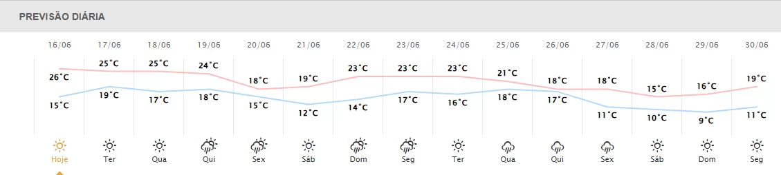 Em Toledo, a expectativa é de sol entre nuvens, termômetros variando de 15°C a 24°C, rajadas de vento de até 60km/h e umidade do ar entre 72% e 96%.