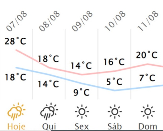 Confira a previsão do tempo para os próximos dias em Marechal Rondon, conforme o Simepar:
