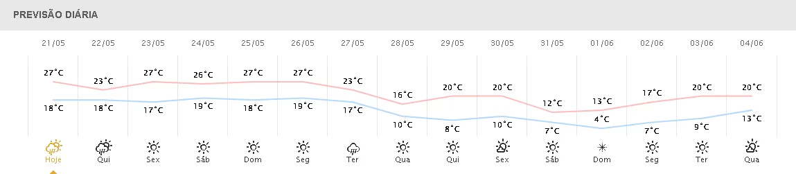 Veja como fica as temperaturas para o resto da semana em Marechal Rondon, de acordo com o Simepar