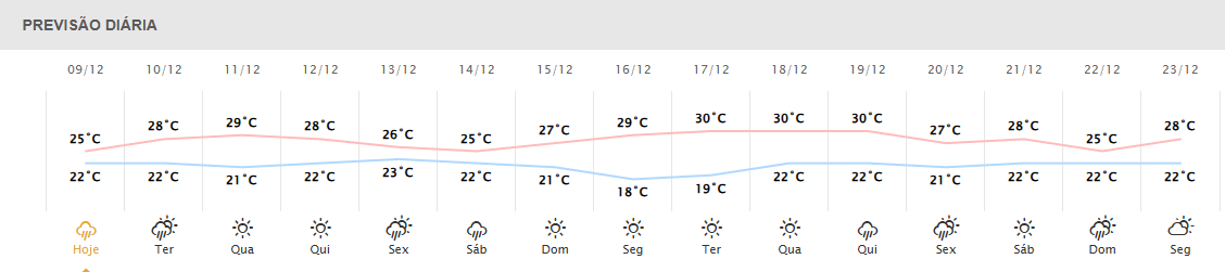 Para amanhã, terça-feira (10), o Simepar (Sistema de Tecnologia e Monitoramento Ambiental do Paraná), aponta 1,7 milímetro de chuva. Quarta e quinta haverá sol. A chuva volta na sexta, com 4,2 milímetros, e segue no sábado, com 32,7 milímetros. No domingo o sol voltará a dar as caras.