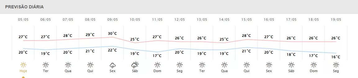 Não está descartada ocorrência de chuvas isoladas nas regiões oeste e sul durante a madrugada. No litoral, chuviscos ocasionais podem ocorrer devido a maior intrusão de umidade oceânica. Durante a tarde, o sol predomina entre nuvens em todas as regiões.