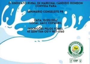 O Seminário Conseleite faz parte de um ciclo de palestras organizado pelo Conselho Paritário Produtores/Indústrias de Leite do Paraná, que iniciou ontem (06) em Francisco Beltrão, segue na terça-feira em Marechal Rondon e Missal e se estende até quarta-feira (11) em Toledo e Umuarama. Interessados em participar do evento no município rondonense precisam confirmar a presença na sede do Sindicato Rural ou pelos telefones (45) 3254-1164 e (45) 99817-0160.