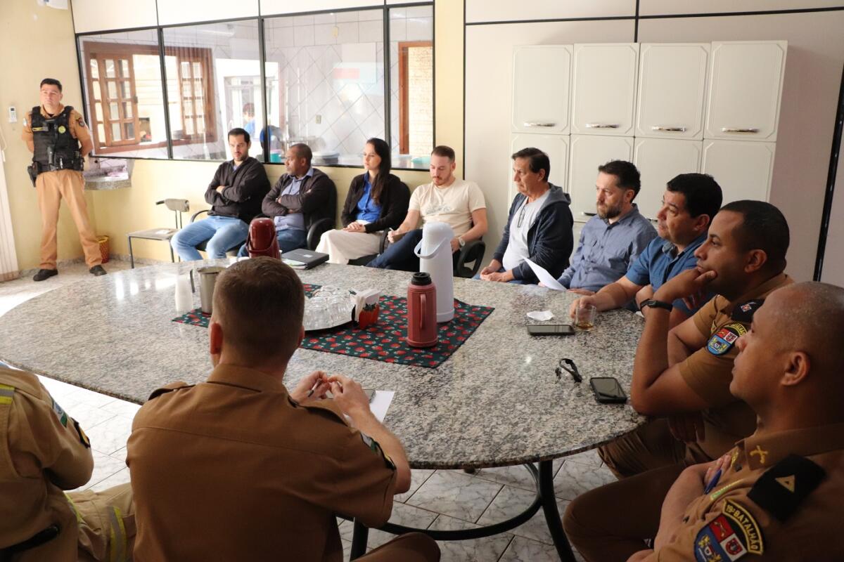 A reunião ocorreu na 2ª Companhia da Polícia Militar (PM), tendo contado com as presenças do secretário municipal de Mobilidade, coronel Welyngton Alves da Rosa, do representante da Monicloud, Jimmy Klug, além de representantes da Acimacar (Associação Comercial e Empresarial), do Conseg (Conselho Comunitário de Segurança), do Corpo de Bombeiros, da PM e da Polícia Civil.