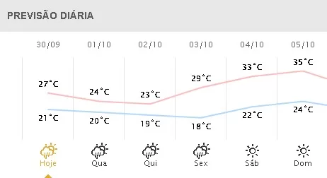 Confira como ficam as temperaturas em Marechal Rondon ao longo da semana, de acordo com o Simepar: