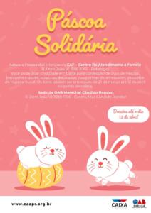 O objetivo é arrecadar barras de chocolate (para a confecção de ovos de Páscoa), bombons, doces, bolachas, casquinhas de amendoim e produtos de higiene bucal, em favor do Centro De Atendimento à Família (CAF).
