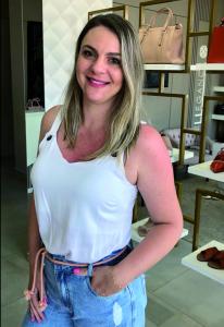Proprietária da Opção da Moda, Marjori Maiara dos Santos: “Pensamos na praticidade e no conforto das pessoas comprarem pela live, vendo a peça no corpo. A aceitação é ótima e os clientes da loja física acompanham. Também vimos crescer o número de vendas em outros locais” (Foto: Divulgação)