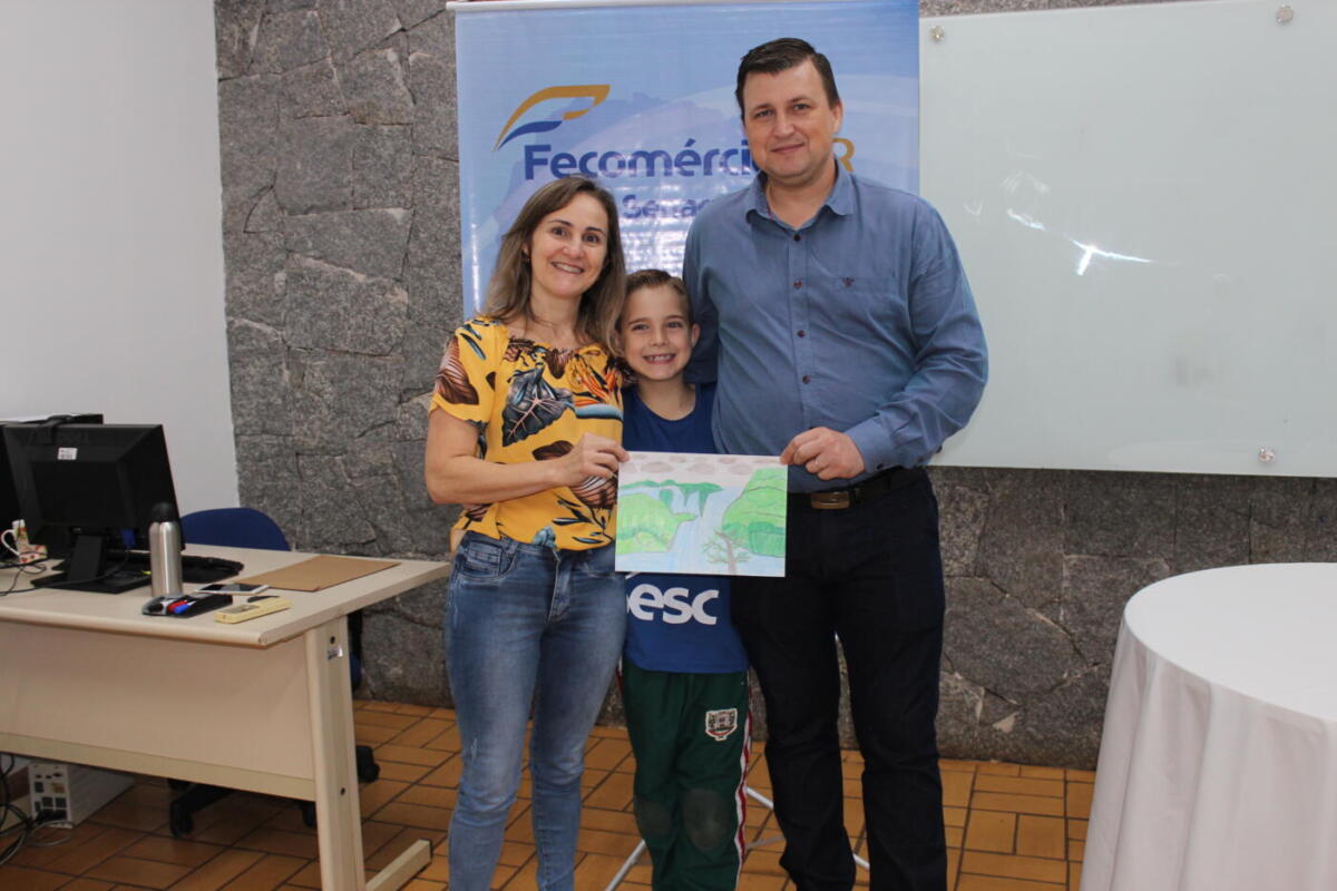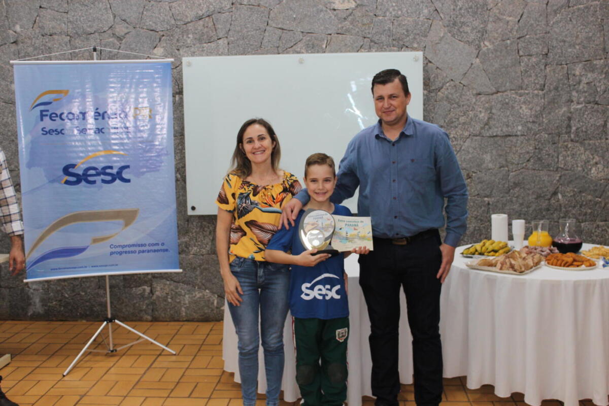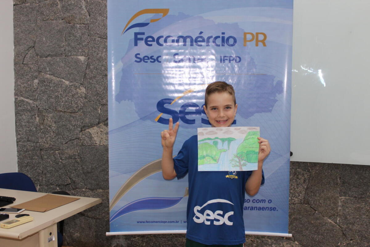 Em solenidade realizada no Sesc de Marechal Cândido Rondon, na última terça-feira (22), foi feita a entrega de troféu ao estudante rondonense que teve trabalho selecionado no concurso “Entre Caminhos do Sesc Paraná”. Trata-se de Bernardo Lorenzo Grisa Boreli, estudante da rede pública de ensino, que emplacou seu desenho entre os 15 melhores do Estado, na categoria estudante.