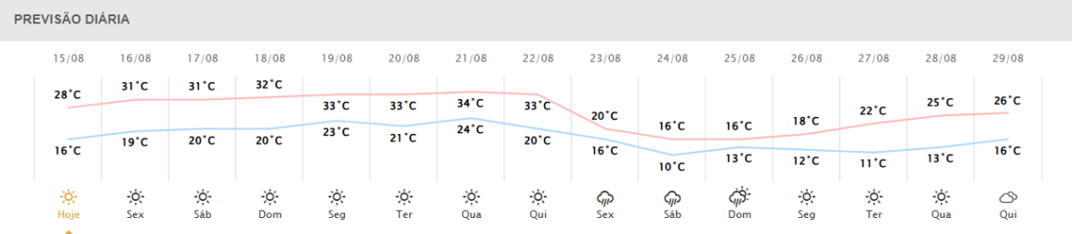 A partir de hoje os termômetros começam a subir e nos próximos dias as temperaturas chegam na casa dos 30ºC, com dias ensolarados, máximas elevadas e tempo seco, aponta o Simepar.